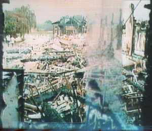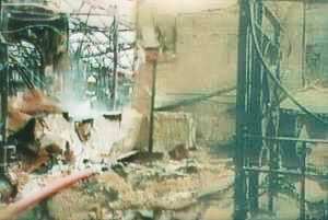 (right). Most of the wreckage here is made up of tables and chairs, but