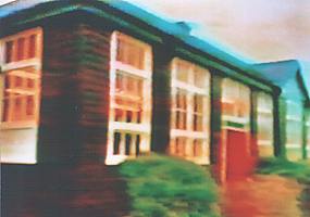 appearance as the flat roofed building in the distant fog of the negative