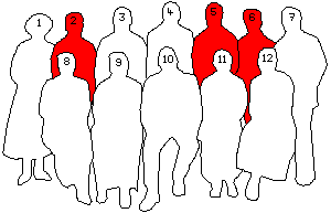 - Miss Christian? 2 - Mr. T. Walton 3 - ?? 4 - Mr. C. Daggerell(?) 5 - Mr. Ingle 6 - Mr. E. Whitehead 7 - Mr. A. Cottingham 8 - ?? 9 - Mrs. Pickard 10 - Mr. Pickard 11 - ?? 12 - ?? |